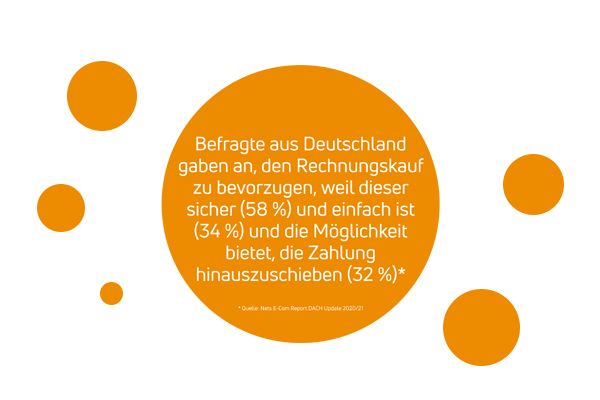 There are several reasons why most consumers in Germany prefer BNPL as a payment method. Many consumers indicate that they can better manage their finances this way and appreciate the option to pay for the ordered goods only when they are truly satisfied with them. In the Nets E-Com Report DACH Update 2020/21, respondents from Germany stated a preference for invoicing because it is secure (58%), easy (34%), and offers the possibility to defer payment (32%).