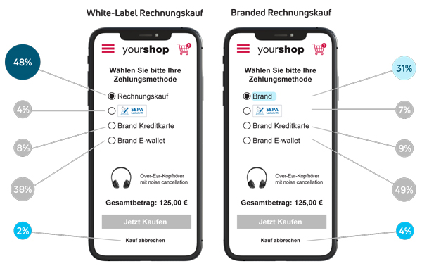 A study indicates that white-label solutions for invoicing increase the conversion rate and reduce purchase abandonment. 48% of respondents preferred invoicing with a white-label version, whereas only 31% opted for invoicing when offered under the brand name of a third-party provider (Branded Invoicing).